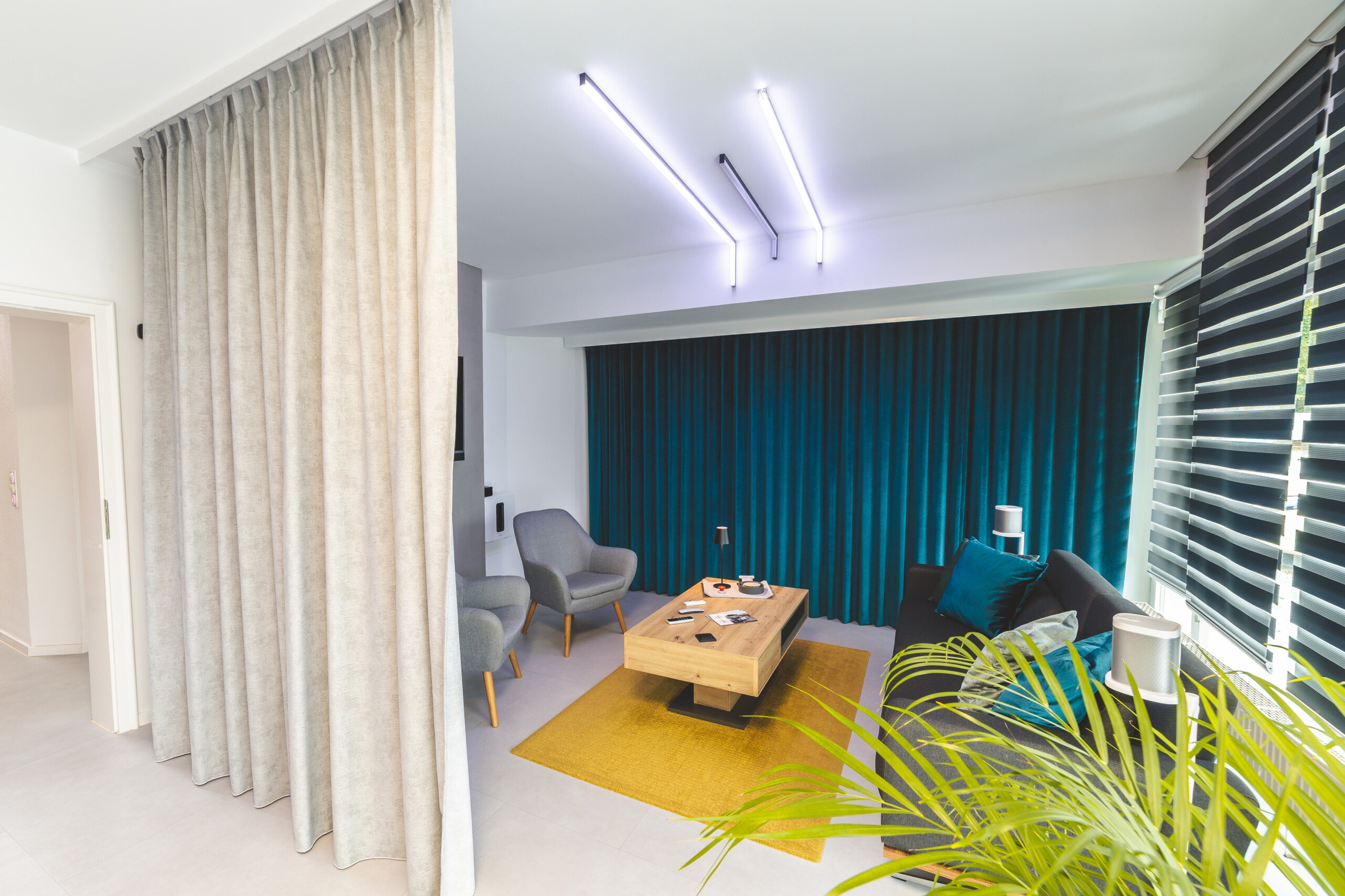 Anbindung an Smart Home Systeme wie Loxone und KNX sowie dem Flüstermodus der Somfy-Motoren ist dies problemlos möglich. Genießen Sie den Luxus einer automatisierten Steuerung Ihrer Gardinen und erleben Sie den erhöhten Komfort in Ihrem Zuhause.